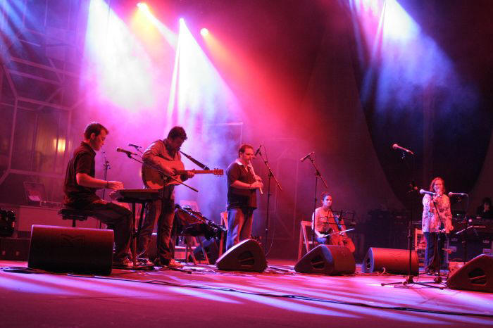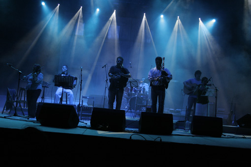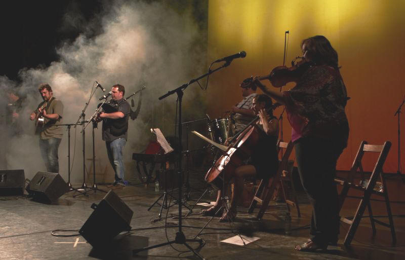 Peformance in August 2010. Musicians: - Pablo G. Esqueira: Accordion, piano & keyboards - Juan Salgueiro: Acoustic Guitar - Ruth García: Violin and principal voice - Fran Parapar: Percussion - Olivier Cano: Trasverse flute - Javier Pena "Bossa": Bagpipe, Flute & whistle - Blanca López: Cello - Jose Miguel Soto: Bagpipe, Accordion, flute, whistle and percussion.
