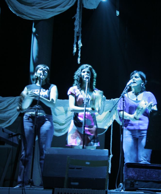 Performance in Extremadura International Festival - Badajoz July 2012.. "Cantareiras" Singers & Tambourine players: Irma Moreno (voice & percussion), Mercedes Balseiro, Xiana Ínsua y Sara Moreno (Principal voice).